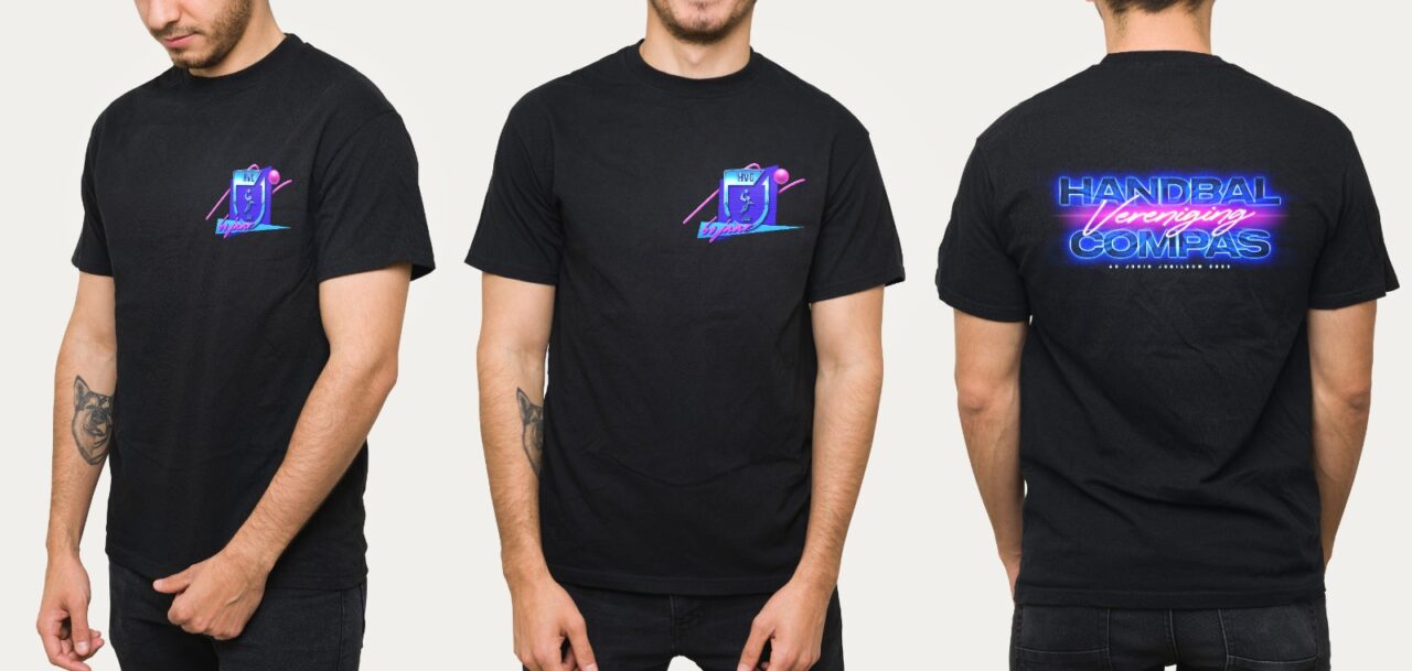 Het jubileumshirt is ontworpen door lid Jasper Steenhuis. Zowel voor- als achterop komt feestelijke bedrukking. Zie hieronder.